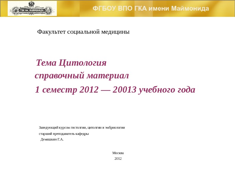Тема Цитология справочный материал 1 семестр 2012 —