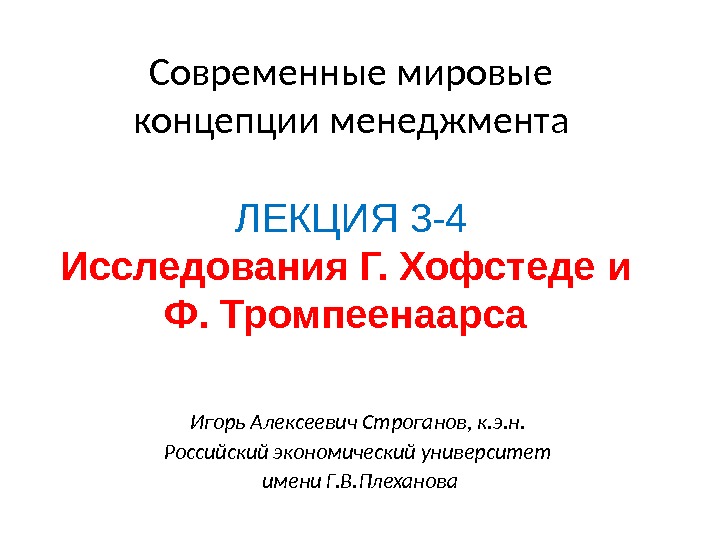 Современные мировые концепции менеджмента Игорь Алексеевич Строганов, к.