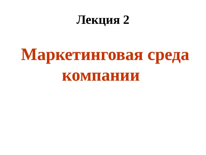Лекция 2 Маркетинговая среда компании Вопросы лекции: