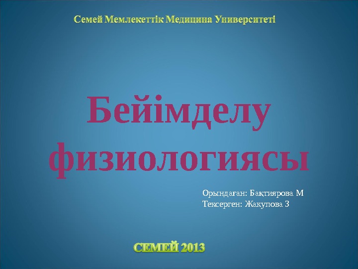 Бейімделу физиологиясы Орында ан: Ба тиярова Мғ қ