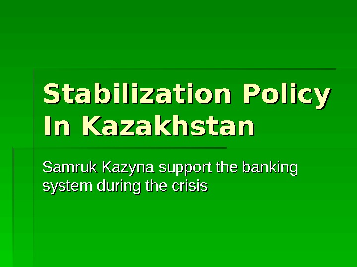 Stabilization Policy In Kazakhstan Samruk Kazyna support the