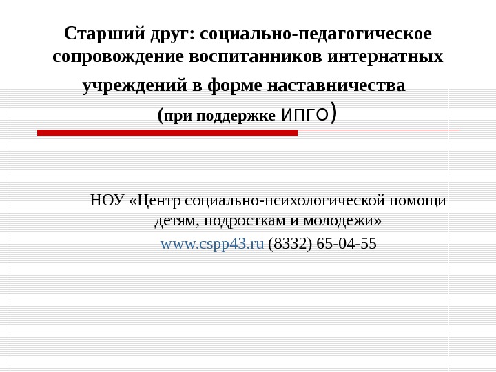 Старший друг: социально-педагогическое сопровождение воспитанников интернатных учреждений в