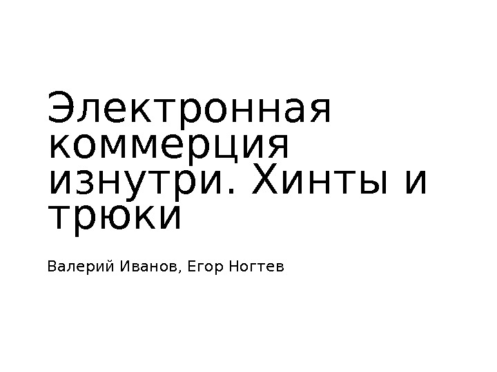 Электронная коммерция изнутри. Хинты и трюки Валерий Иванов,