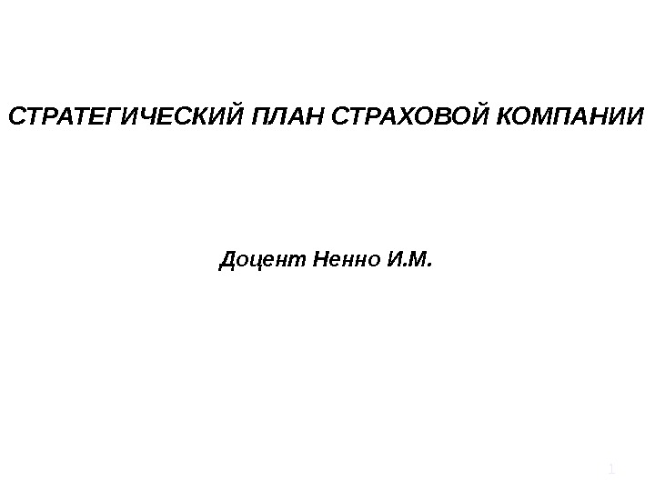 1 СТРАТЕГИЧЕСКИЙ ПЛАН СТРАХОВОЙ КОМПАНИИ Доцент Ненно И.