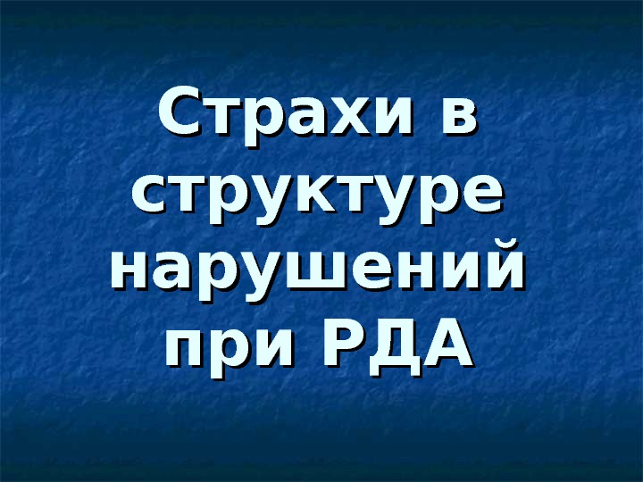 Страхи в структуре нарушений при РДА Страхи
