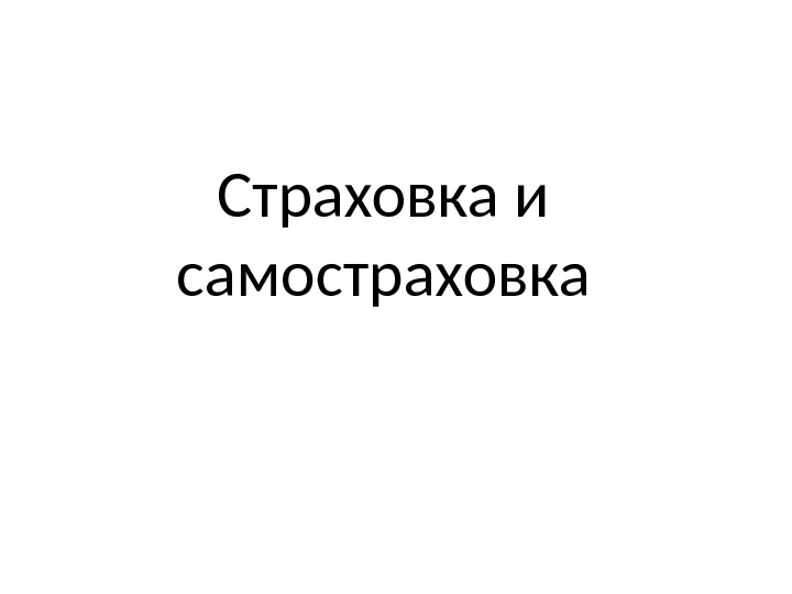 Страховка и самостраховка Страховка • совокупность