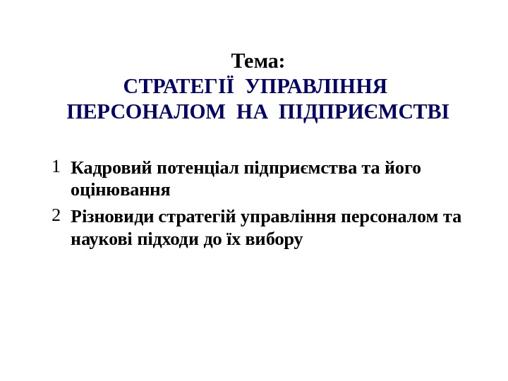 Тема: СТРАТЕГІЇ УПРАВЛІННЯ ПЕРСОНАЛОМ НА ПІДПРИЄМСТВІ 1