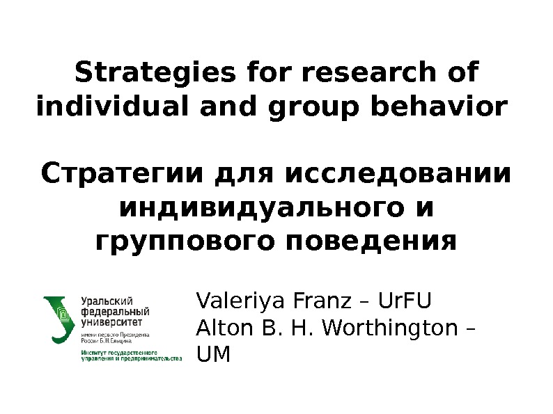 Strategies for research of individual and group behavior