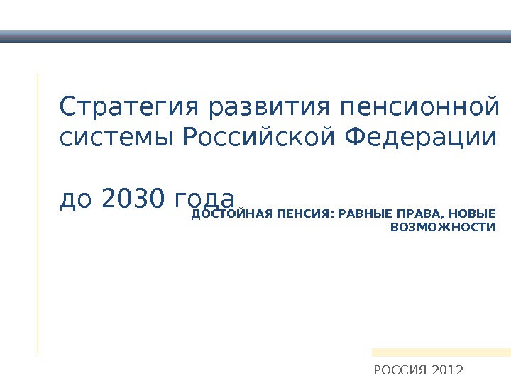 Стратегия развития пенсионной системы Российской Федерации до 2030