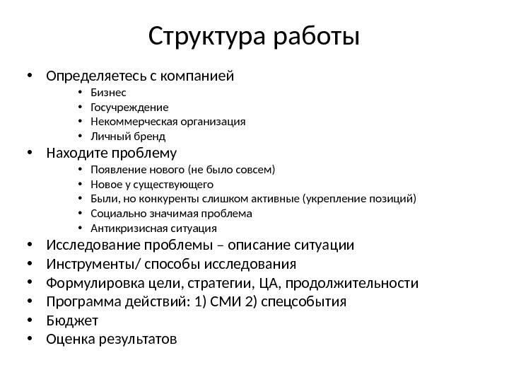 Структура работы • Определяетесь с компанией