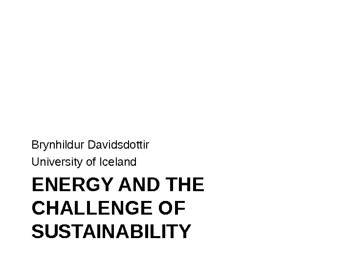 ENERGY AND THE CHALLENGE OF SUSTAINABILITYBrynhildur Davidsdottir University