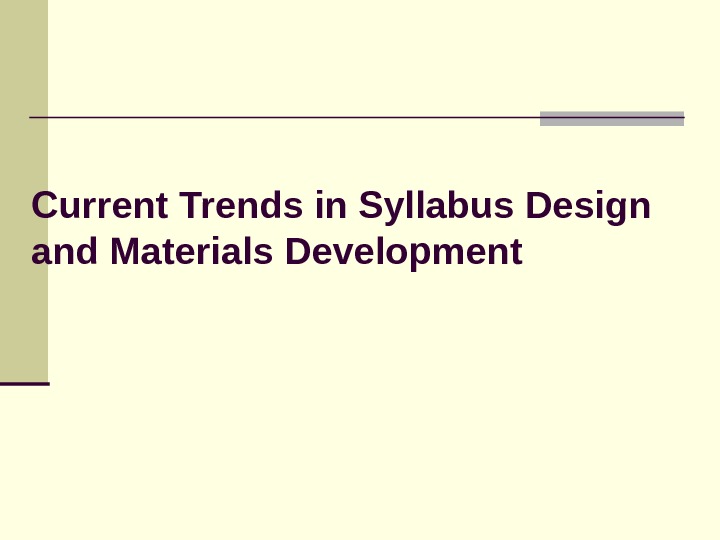 Current Trends in Syllabus Design and Materials Development