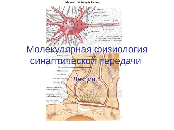 Молекулярная физиология синаптической передачи Лекция 4 Содержание