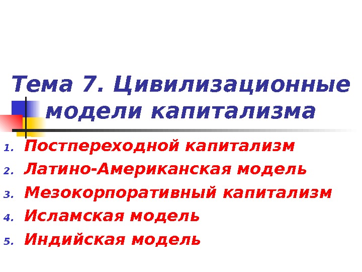 Тема 7. Цивилизационные модели капитализма 1. Постпереходной капитализм