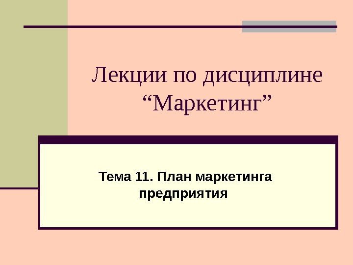 Лекции по дисциплине “Маркетинг” Тема 11. План маркетинга