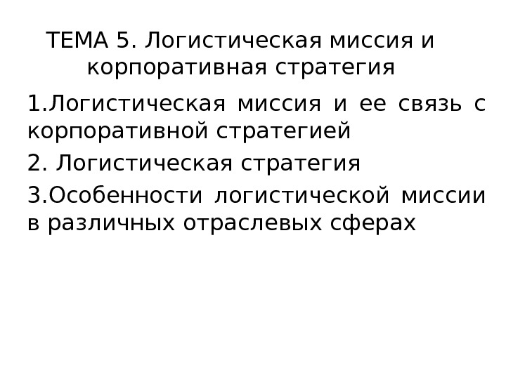 ТЕМА 5. Логистическая миссия и корпоративная стратегия 1.