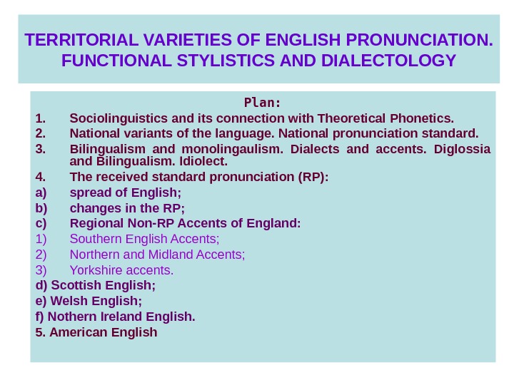 TERRITORIAL VARIETIES OF ENGLISH PRONUNCIATION. FUNCTIONAL STYLISTICS AND