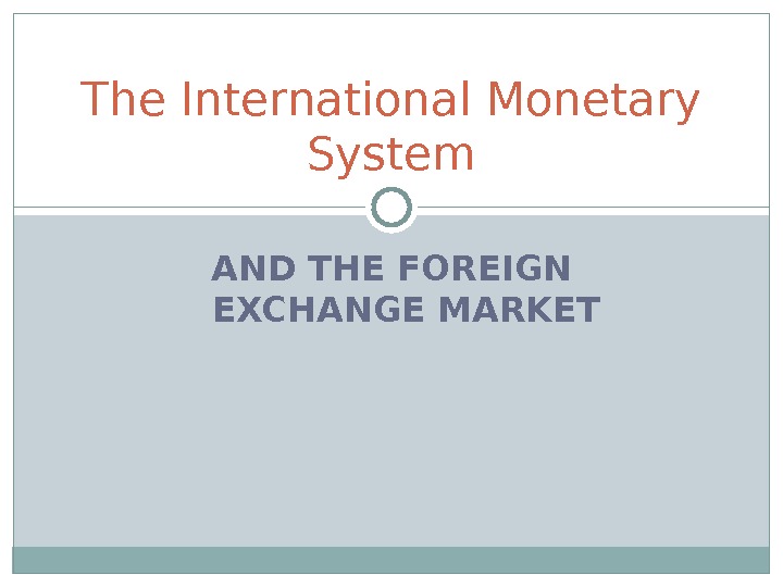 AND THE FOREIGN EXCHANGE MARKETThe International Monetary System