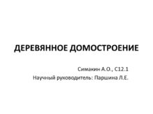 ДЕРЕВЯННОЕ ДОМОСТРОЕНИЕ Симакин А.О., С12.1 Научный руководитель: Паршина