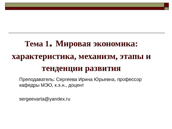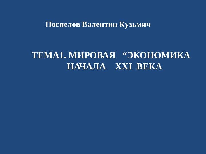 ТЕМА 1. МИРОВАЯ “ ЭКОНОМИКА