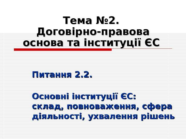 Тема № 2. Договірно-правова основа та інституції
