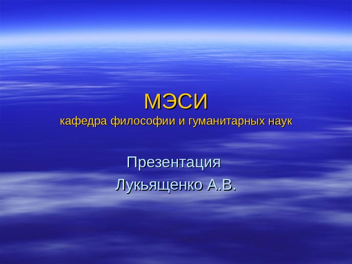 МЭСИ кафедра философии и гуманитарных наук Презентация Лукьященко