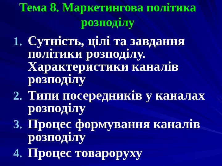 Тема 8. Маркетингова політика розподілу 1. Сутність, цілі