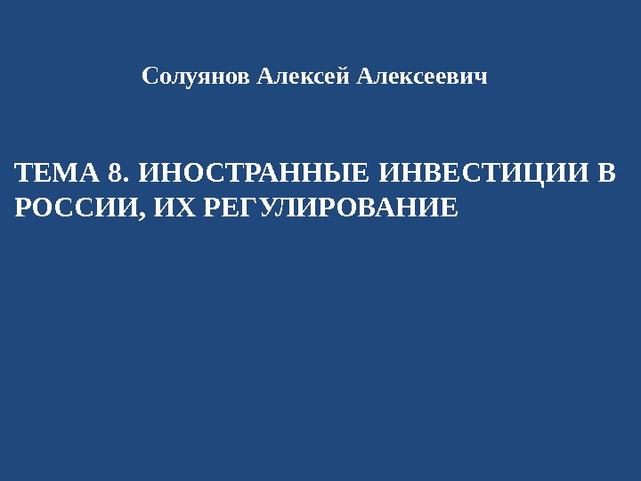 ТЕМА 8. ИНОСТРАННЫЕ ИНВЕСТИЦИИ В РОССИИ, ИХ РЕГУЛИРОВАНИЕ