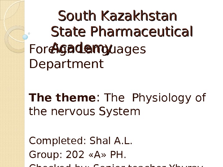 South Kazakhstan State Pharmaceutical Academy Foreign Languages Department