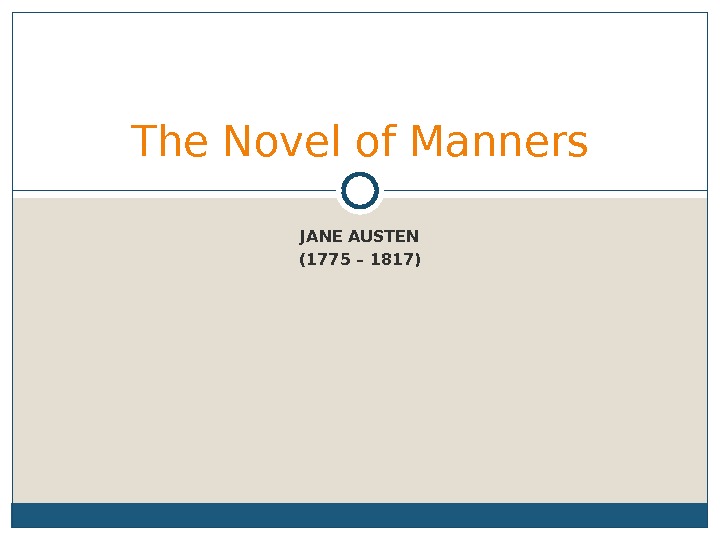 JANE AUSTEN (1775 – 1817)The Novel of Manners