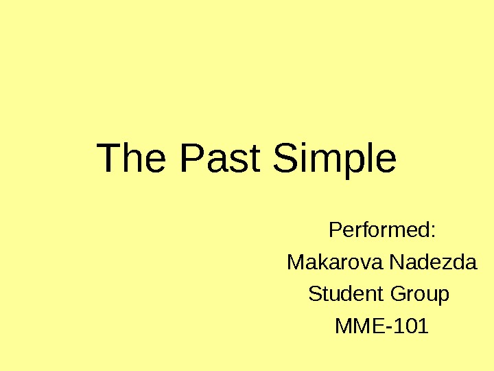 The Past Simple Performed: Makarova Nadezda Student Group