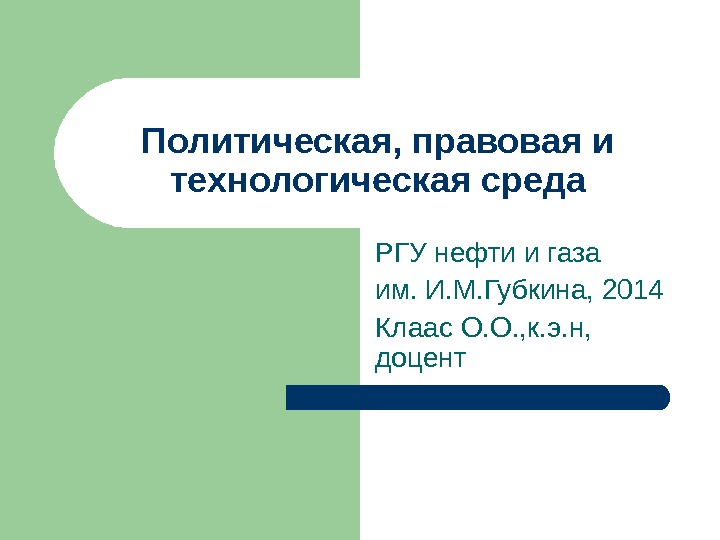 Политическая, правовая и технологическая среда РГУ нефти и
