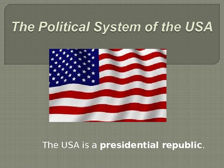 The USA is a presidential republic. It