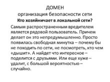 ДОМЕН организация безопасности сети Кто хозяйничает в локальной