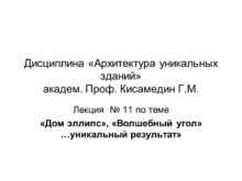 Дисциплина «Архитектура уникальных зданий» академ. Проф. Кисамедин Г.М.