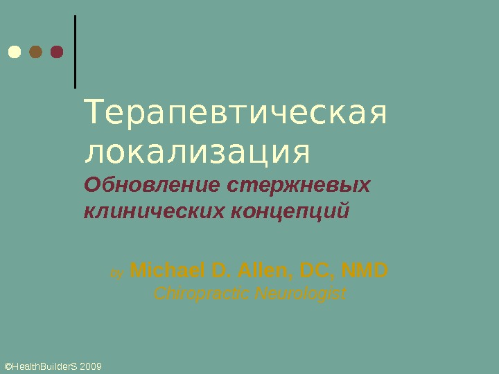 ©Health. Builder. S 2009 Терапевтическая локализация Обновление стержневых