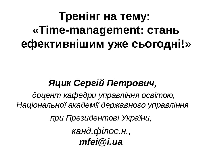 ИЛИ УПРАВЛЕНИЕ СВОЕЙ ЖИЗНЬЮ? Тайм менеджмент Владимир Дегтярев