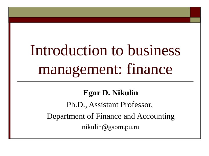 Egor D. Nikulin Ph. D. , Assistant Professor,