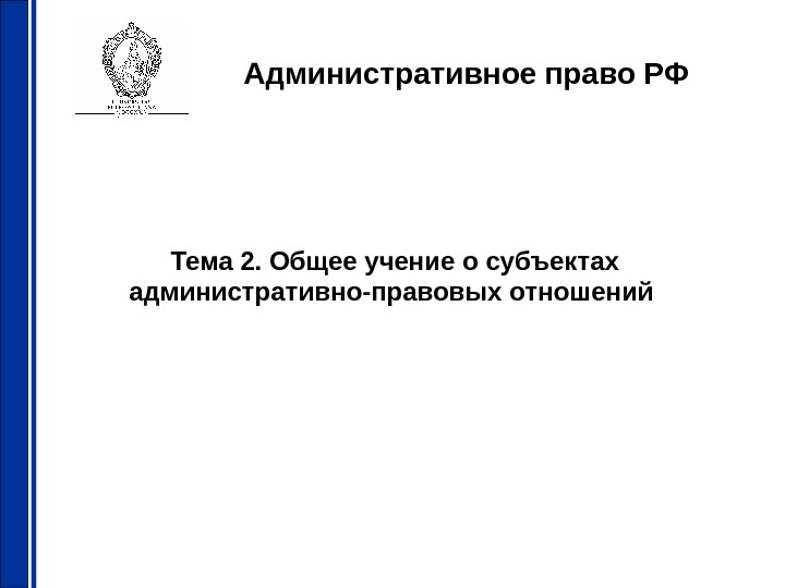 Административное право РФ Тема 2. Общее учение о