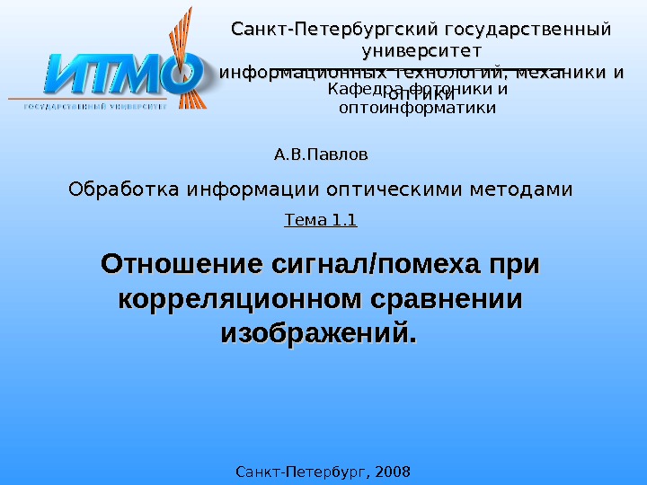 Кафедра фотоники и оптоинформатики. Санкт-Петербургский государственный университет информационных