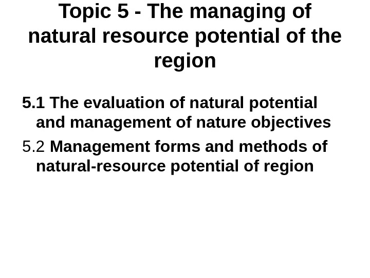 Topic 5 — The managing of natural resource