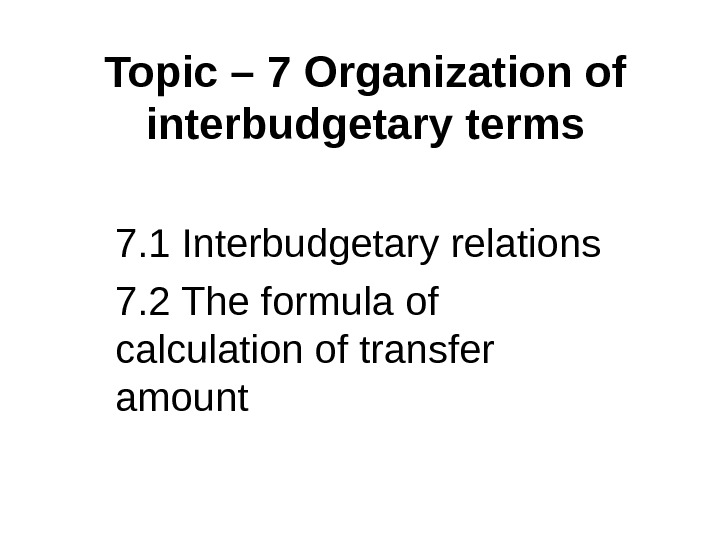 Topic – 7 Organization of interbudgetary terms 7.