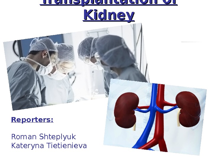 Transplantation of Kidney Reporters: Roman Shteplyuk Kateryna Tietienieva