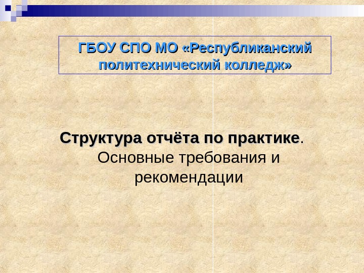 ГБОУ СПО МО «Республиканский политехнический колледж» Структура отчёта