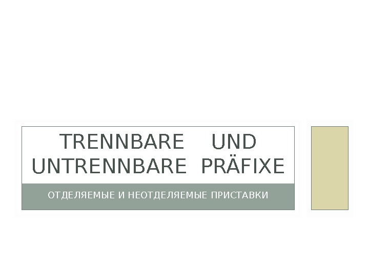ОТДЕЛЯЕМЫЕ И НЕОТДЕЛЯЕМЫЕ ПРИСТАВКИ TRENNBARE UND UNTRENNBARE