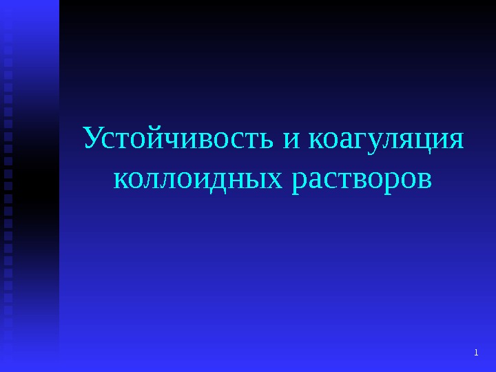 1 Устойчивость и коагуляция коллоидных растворов 2