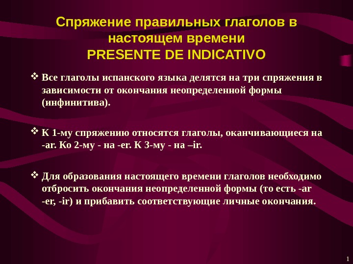 Спряжение правильных глаголов в настоящем времени PRESENTE DE