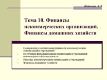 Тема 10. Финансы некоммерческих организаций. Финансы домашних хозяйств
