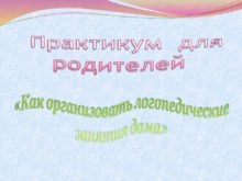 «Как организовать логопедические занятия дома» Практикум для родителей