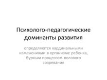 Психолого-педагогические доминанты развития определяются кардинальными изменениями в организме